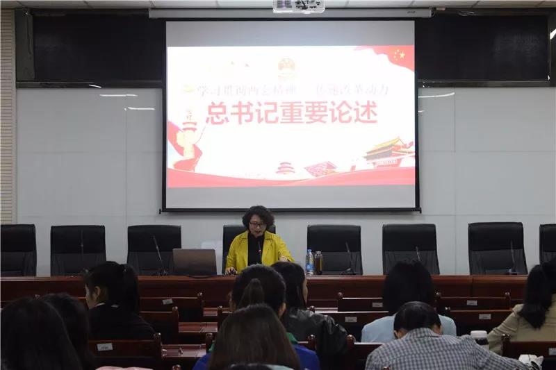 首先,杨学娟强调此次的讲座主题即学习两会精神。随后,她概述了两会的基本常识,指出了两会的含义、内容以及两会召开的意义,使大家对两会有了初步的认识。接着,杨学娟就习近平总书记提出的“新型党政制度”及将“发展、人才、创新”三要素并列到第一的提法做了详细地阐释,使学员们领悟到新时代党的新思想并认识到坚定党的领导的重要性。