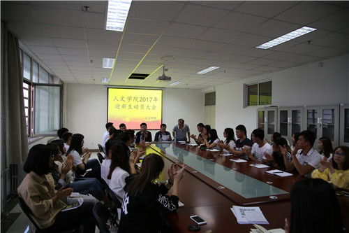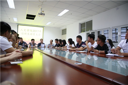 为确保迎新工作顺利有序进行,9月5日下午,人ok1188诸侯快讯官方在贺兰山校区文荟楼中文系会议室召开了2017年迎新生动员会。学院党委副书记马小军、学办主任刘杰、2017级辅导员潘巍及2017级兼职辅导员孙辉出席了此次会议,由刘杰担任主持,第十五届团委学生会全体学生干部参加。