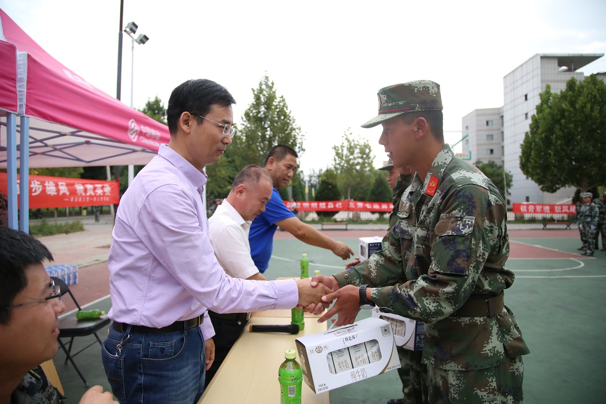 军歌嘹亮,唱响青春;正步雄风,英姿飒爽!限时15分钟的军被折叠充分展示了军被折叠方队娴熟的折叠技能,面对着整整齐齐的“豆腐块”,院领导们表达了高度的赞扬。队列会操口号响亮,整齐划一,赢得了领导们的充分肯定。一腔热血,齐诉人文情;一曲高歌,共唱《映山红》!随着前奏缓缓响起,清丽悠扬的独唱直击心间,随后的合唱低沉却又不失婉转,与独唱相互交织,回荡在训练场的上空,久不平息。之后,学院领导向军训教官和参训学生赠送慰问品。