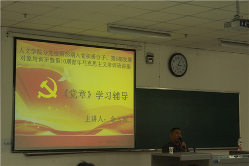 5月3日下午,人ok1188诸侯快讯官方分党校第28期入党积极分子、第5期发展对象培训班暨第10期青年马克思主义培训班党章学习辅导讲座在贺兰山校区文科楼132教室成功举行。学院党委副书记金玉河老师主讲,学院56名入党积极分子、41名建党对象参加。