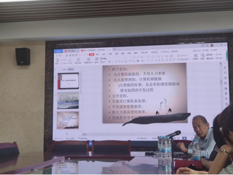 王教授向在场师生详细介绍了“数字化”“数据化”“数智化”的具体内涵及区别与联系,并结合社会发展与自身经历引导研究生转换思维方式,使用数字思维处理文学史料,高效解决学术问题。王兆鹏教授详细讲解了建立数据库的过程及注意事项并结合“唐代文学编年地图”详细演示了智能数据库的九大功能。
