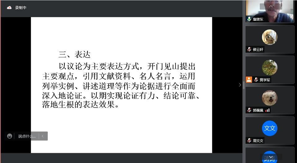 最后,惠继东教授在谈到论文表达方面时指出,提出观点一定要开门见山,且在论证的时候一定要全面而深入,而这一点也是一直以来学生比较薄弱的环节,在讲述这一环节的时候,惠教授将自己多年的教学经验带入其中,鼓励同学们在闲暇时训练自己在科研过程中的书面表达能力。老师还给同学们分享了自己课题写作的具体操作过程,以此来教会同学们如何把搜集到的学术界研究情况的信息转化为作者自己的言语,并有力地引出自己论文所具备的价值。