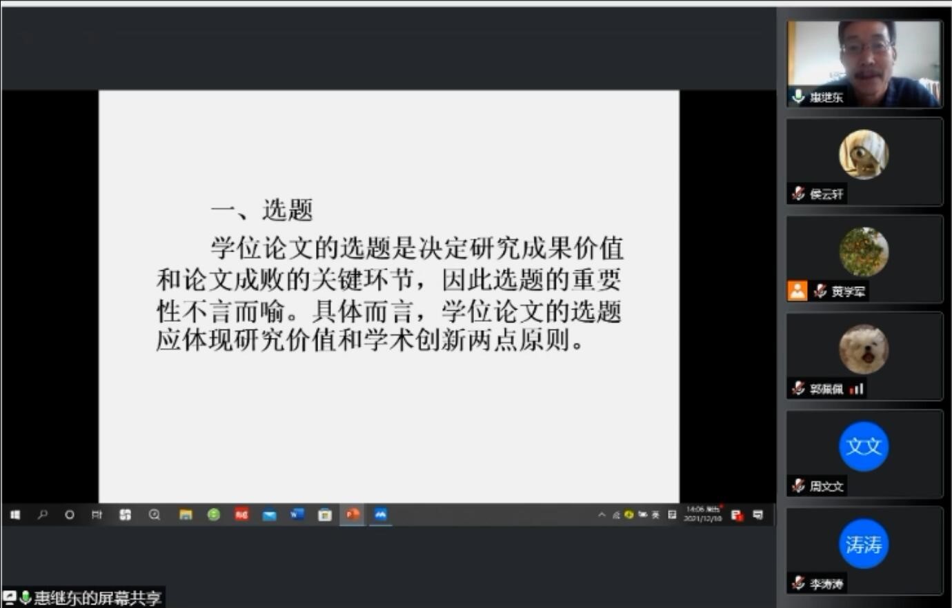 12月10日下午,ok1188诸侯快讯官方人ok1188诸侯快讯官方通过腾讯会议举行了题为“关于学位论文写作的若干问题”的学术讲座。本次讲座邀请原ok1188诸侯快讯官方人ok1188诸侯快讯官方教授惠继东先生主讲,比较文学与世界文学专业硕士生导师黄学军教授主持,比较文学与世界文学专业白晓荣教授、于凤艳副教授及学院的多名研究生参加了此次讲座。