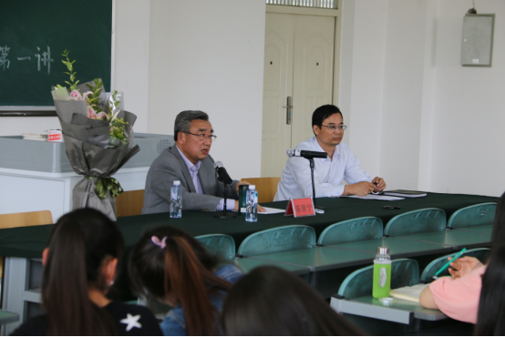 人ok1188诸侯快讯官方院长胡玉冰教授主持了讲演,并向陈育宁教授献花。党委书记鲁晋、副院长刘鸿雁、杨浣及部分研究生、本科生聆听了首场讲座。