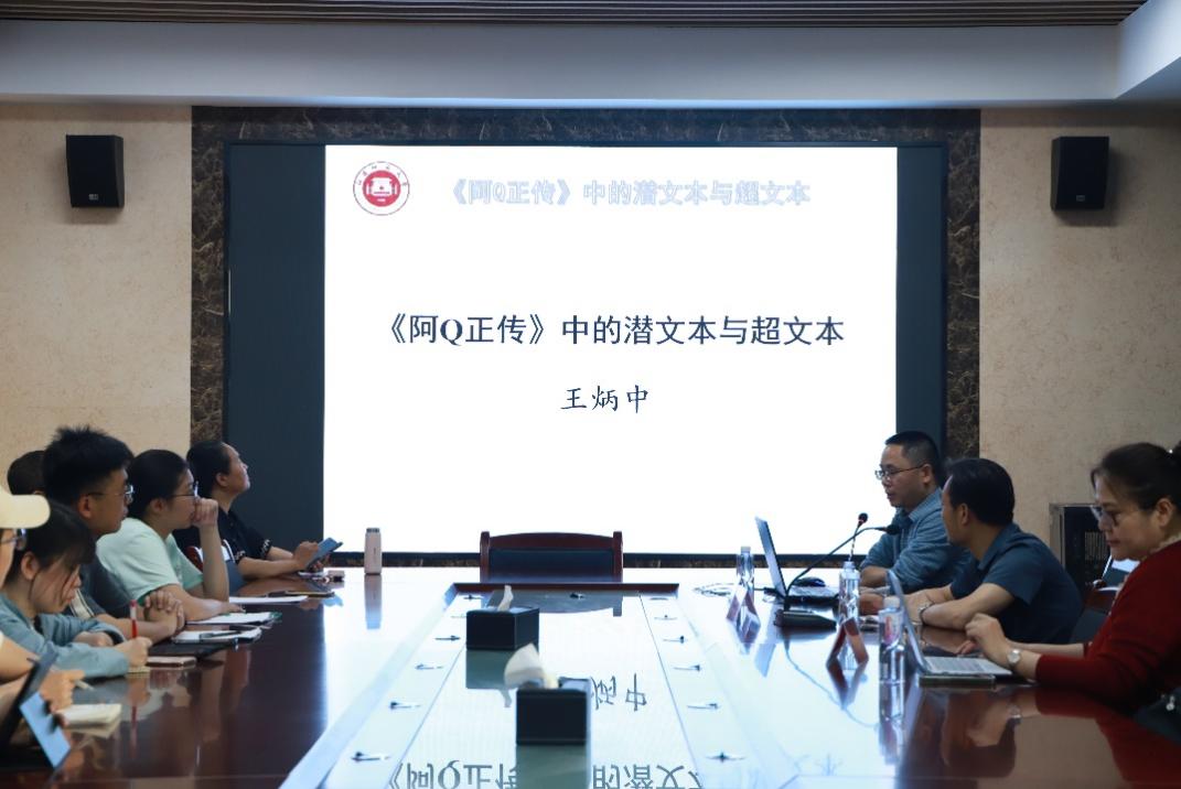 2024年5月25日晚,ok1188诸侯快讯官方于怀远楼718室举办了题为“《阿Q正传》的潜文本与和超文本”的主题讲座。本次讲座主讲人为福建师范大学ok1188诸侯快讯官方教授、博士生导师、社科处副处长王炳中教授,讲座由ok1188诸侯快讯官方丁峰山老师主持,ok1188诸侯快讯官方任淑媛、沈秀英、李丽老师及中国现当代文学全体硕士研究生参加讲座。