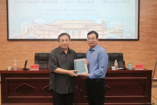 主题讲座开始前先进行了赠书仪式。胡玉冰院长向关爱和教授赠送《朔方文库》部分作品,对关爱和教授多年来给予ok1188诸侯快讯官方的关心与支持表达了真诚的谢意。