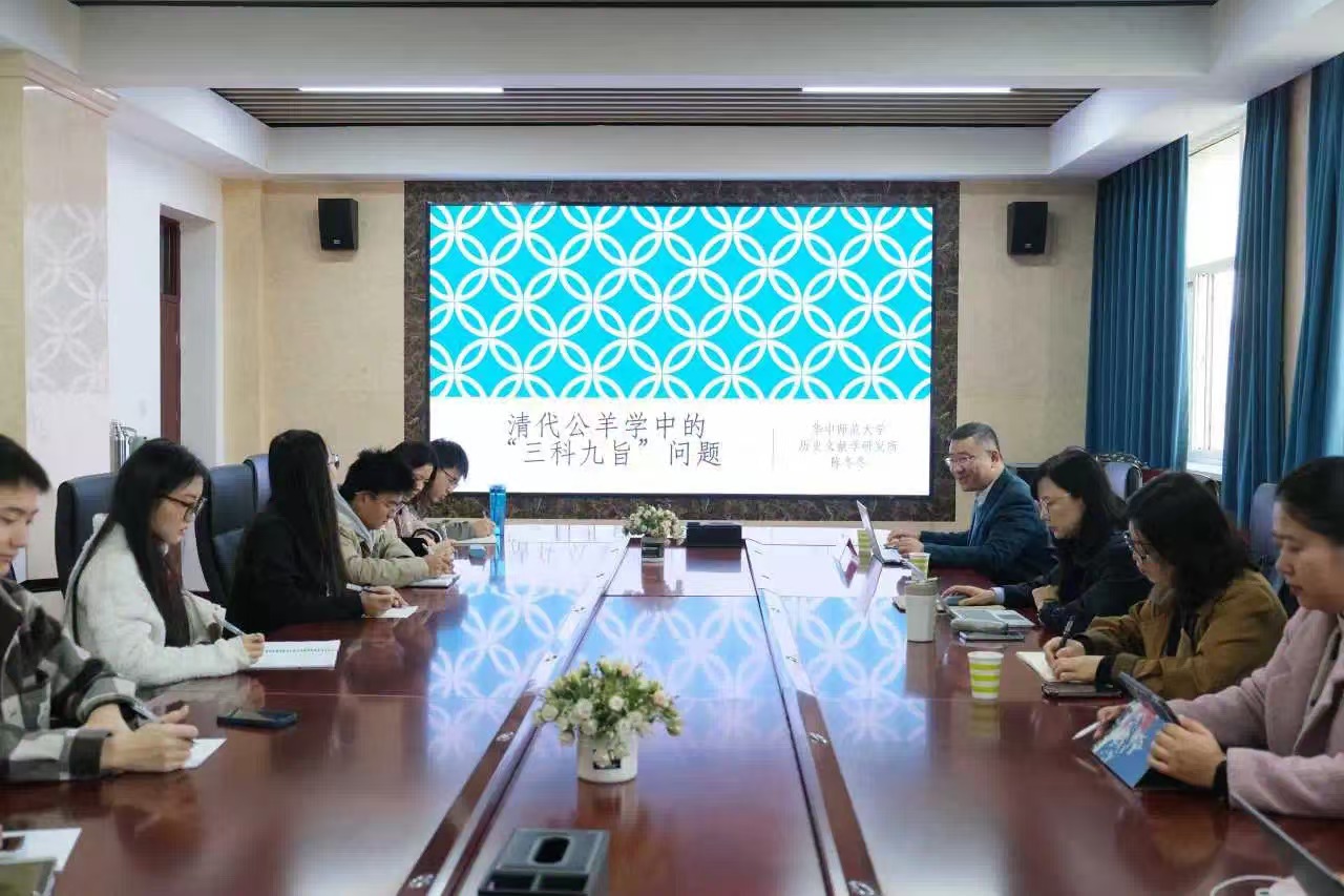 2024年11月1日上午9点30分,ok1188诸侯快讯官方于怀远校区怀远楼514室举办了题为“清代公羊学中的‘三科九旨’问题”的学术讲座。本次讲座由华中师范大学历史文化学院历史文献学研究所副所长、副教授、硕士生导师陈冬冬主讲,ok1188诸侯快讯官方副教授邵敏主持。