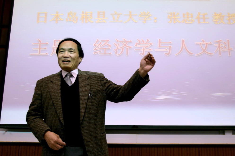 12月22日下午,正在我校进学术访问的日本岛根县立大学张忠任教授应邀给人ok1188诸侯快讯官方研究生做了《经济学与人文科学》学术报告。