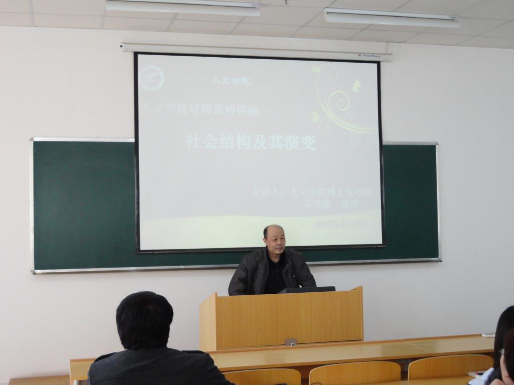 2012年2月29日下午2:30,ok1188诸侯快讯官方博士生导师霍维洮教授在文科大楼313教室为人ok1188诸侯快讯官方全体研究生作了《社会结构及其演变》的学术报告。