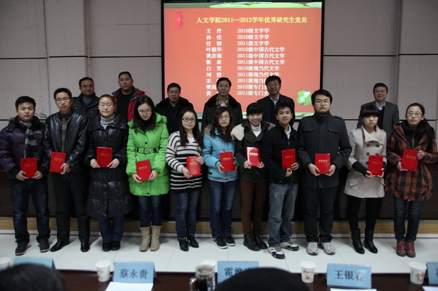 2012年12月29日上午9点,人ok1188诸侯快讯官方2011-2012学年研究生优秀党员、优秀干部表彰大会暨第八届“博学杯”研究生学术论文颁奖大会、报告会在文科楼一楼东报告厅隆重举办。人ok1188诸侯快讯官方党总支书记梁向明、院长郎伟、党总支副书记陈柯、党总支副书记金玉河、副院长张天政、副院长宫京成出席了本次大会。