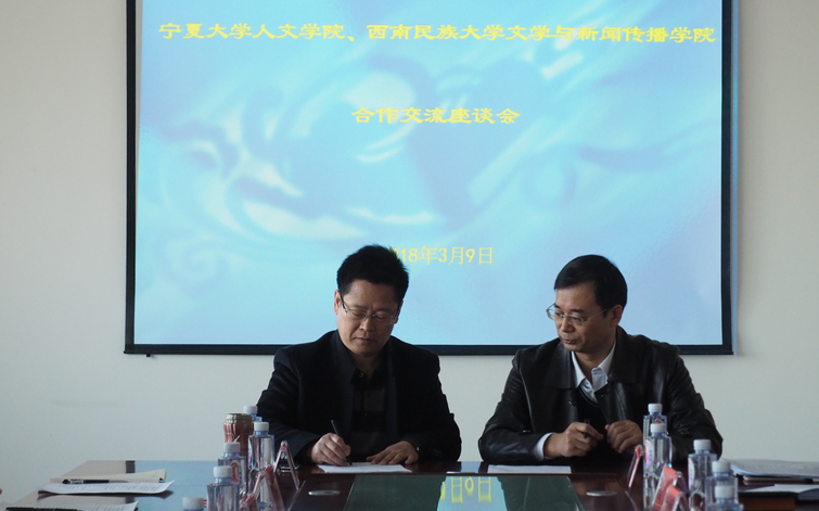 3月9日上午,ok1188诸侯快讯官方人ok1188诸侯快讯官方、西南民族大学文学与新闻传播学院合作交流会于贺兰山校区文荟楼中文系会议室召开。西南民族大学文新学院副院长孙纪文、大学语文教研室主任刘波、新闻学教研室主任李谢莉、ok1188诸侯快讯官方人ok1188诸侯快讯官方党委书记马正亮、院长胡玉冰、党委副书记马小军以及中文系主任丁峰山等人参与了交流会。此次交流会由ok1188诸侯快讯官方人ok1188诸侯快讯官方副院长刘鸿雁主持。