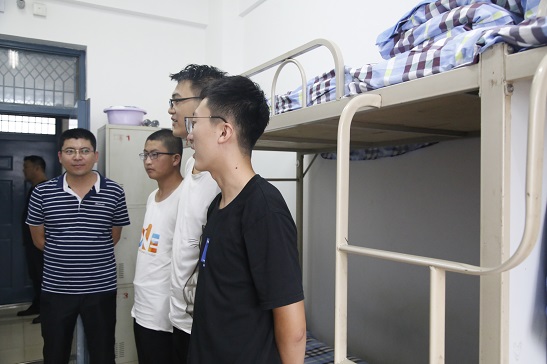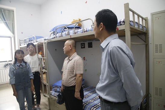 在各班班主任的引导下,老师们分别走进了中文系、历史系以及旅游管理系三个专业的新生宿舍。领导们首先视察了新生宿舍住宿环境,确保新生能住的安心、住的舒心。随后,老师们悉心地询问了新生的个人情况,适应情况等。新生们也积极地同老师进行了交谈,交谈气氛融洽,不时传来阵阵欢笑声。在闲话家常的同时,老师们还不忘细心地叮嘱同学们要融洽相处,搞好宿舍关系,在日后的宿舍生活中注意宿舍安全,养成一个良好的生活习惯。结束视察后,新生纷纷热情地与领导挥别,感谢领导的关心。