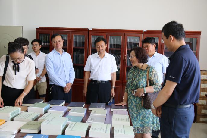 7月11日上午,自治区党委宣传部、黄河出版传媒集团、宁夏人民出版社到文荟楼“自治区人文社科重点研究基地”——古文献与地域文化研究基地参观调研并召开研讨会。黄河出版传媒集团副总经理闫智红,自治区党委宣传部出版管理处处长张雪晴、副处长李莉,宁夏人民出版社社长何志明、副社长孔炜娟及相关人员莅临参会,ok1188诸侯快讯官方副校长刘炎胜、科学技术处处长曹兵、人ok1188诸侯快讯官方党委书记降龙、院长胡玉冰及学院相关教师参加了此次调研会。