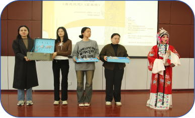 活动共三部分。第一部分是学术讲座,李九华教授作了题为《传承优秀传统文化感悟国粹艺术魅力——戏曲常识》的学术讲座。李老师从戏曲的体制、分类和变迁等角度,结合自身经历向大家讲解了相关戏曲知识,在场的同学们通过理论环节对戏曲有了更深的了解,对中华优秀传统艺术产生了好奇和兴趣,讲座也为接下来的活动开展做出了重要铺垫。