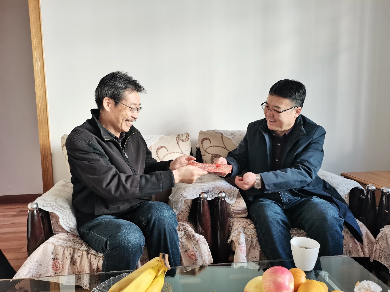 在 中国传统的新春佳节来临之际,1月15日,学院领导张培松、胡玉冰与其他院领导一道,分两组分别带领院工会、院办人员慰问了王庆同、刘继德、田美琳、钱志和、马丽珠、谢式燕、赵慧、冯霞、惠继东、刘志虎等十位退休教职工,为他们提前送上了美好的新春祝福,祝愿老教师身体健康,阖家幸福。
