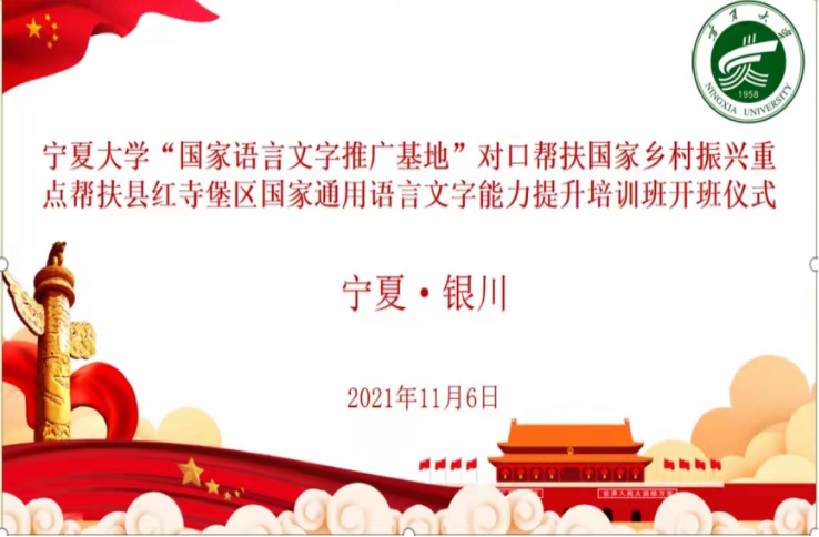 11月6日上午,ok1188诸侯快讯官方国家语言文字推广基地对口帮扶国家乡村振兴重点帮扶县红寺堡区国家通用语言文字能力提升培训开班仪式以线上形式隆重举行。我校党委常委、副校长周震,人ok1188诸侯快讯官方院长胡玉冰,学校办公室副主任刘杰,教务处副处长杨术明,教务处副处长张腾,人ok1188诸侯快讯官方副院长杨晓宇,ok1188诸侯快讯官方培训团队11名专家教师和13名助教,红寺堡区教育局副局长冯进海,培训班班主任张任妹和115名学员参加会议。会议由ok1188诸侯快讯官方教务处副处长张腾主持。
