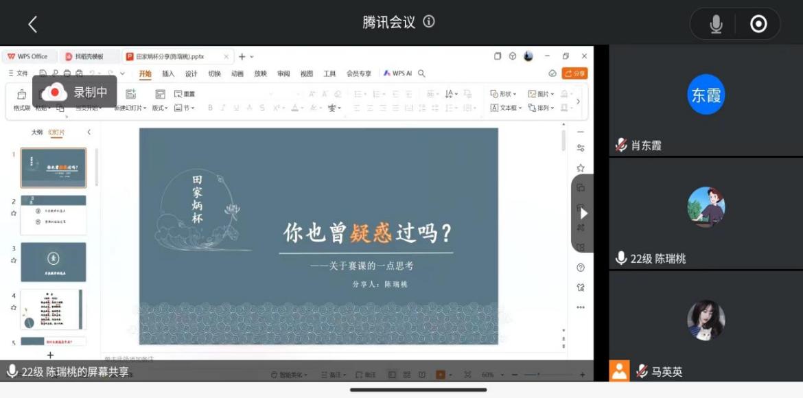 2024年2月22日下午,ok1188诸侯快讯官方在腾讯会议平台顺利举行了第二期“田家炳杯”教学技能大赛参赛经验分享会。分享会旨在通过“田家炳杯”教学技能大赛参赛经验的分享,提升学生的专业技能水平,为本年度教学技能大赛做好充分准备。会议由沈秀英老师主持,邀请了2021级的蔡勇平和2022级的陈瑞桃同学分享他们的参赛体验和心得。梁艳老师和杨志云老师对两位同学的分享进行了精彩的点评,提供了宝贵的建议和指导。2023级学科教学(语文)全体学生与会。