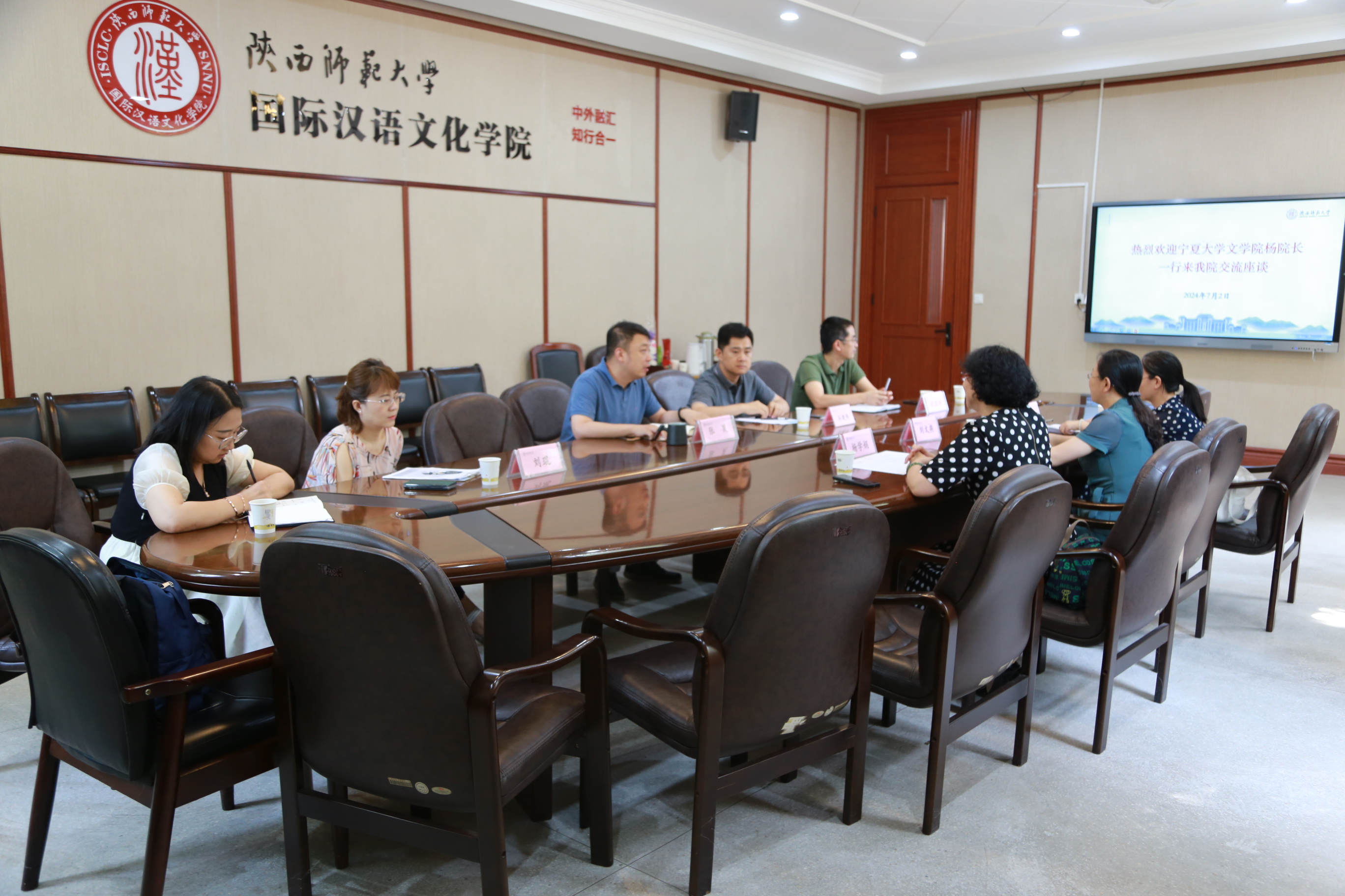 为进一步加强诸侯快讯官网与西部院校的交流合作,落实近日我校与陕西师范大学签订的第二轮对口合作协议,7月2日,ok1188诸侯快讯官方院长胡玉冰带队,副书记兼副院长杨学娟、国际中文教育系主任刘文燕、副主任王莹莹等一行前往西北大学ok1188诸侯快讯官方、陕西师范大学国际汉语文化学院进行调研交流。